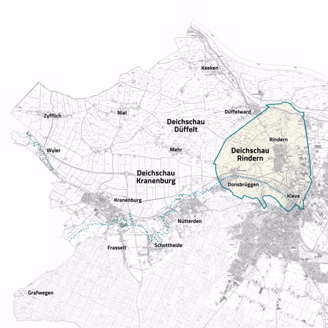 Die Deichschau Rindern ist Mitglied und ein Unterverband des Deichverbandes Kleve Landesgrenze.